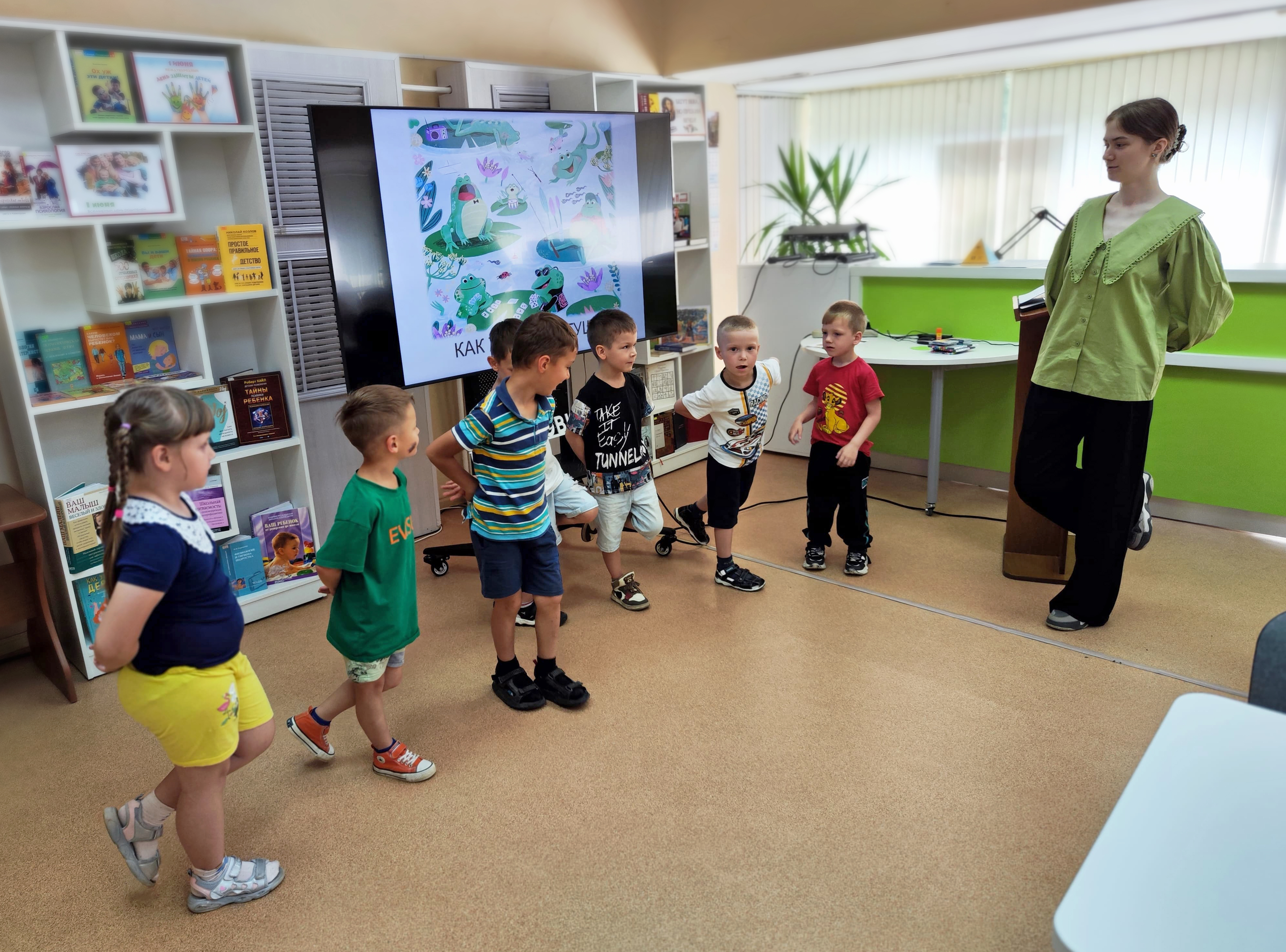 Ребята с большим интересом отправились в виртуальное путешествие по болоту вместе с библиотекарем. Они узнали, что болото — это не просто мокрая местность, а целая экосистема, где живут удивительные существа. Особое внимание уделили лягушкам — дети с удивлением узнали, как из икринок появляются головастики, которые потом превращаются в прыгучих лягушек.