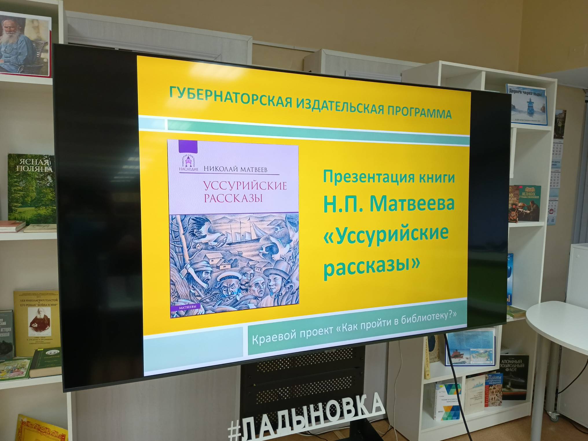 В прошлую пятницу в рамках краевого проекта «Как пройти в библиотеку?» прошла познавательная презентация книги Николая Петровича Матвеева «Уссурийские рассказы». Это событие позволило слушателям познакомиться ближе с творчеством семьи Матвеевых, оставивших яркий след в истории русской литературы Дальнего Востока.