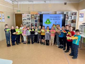 В библиотеке проходила эко-гостиная «Посиделки на болоте». Ребята отправились в виртуальное путешествие по загадочным топям: узнали, кто живёт среди кочек и камышей, чем питаются обитатели болот и почему лягушки такие удивительные.