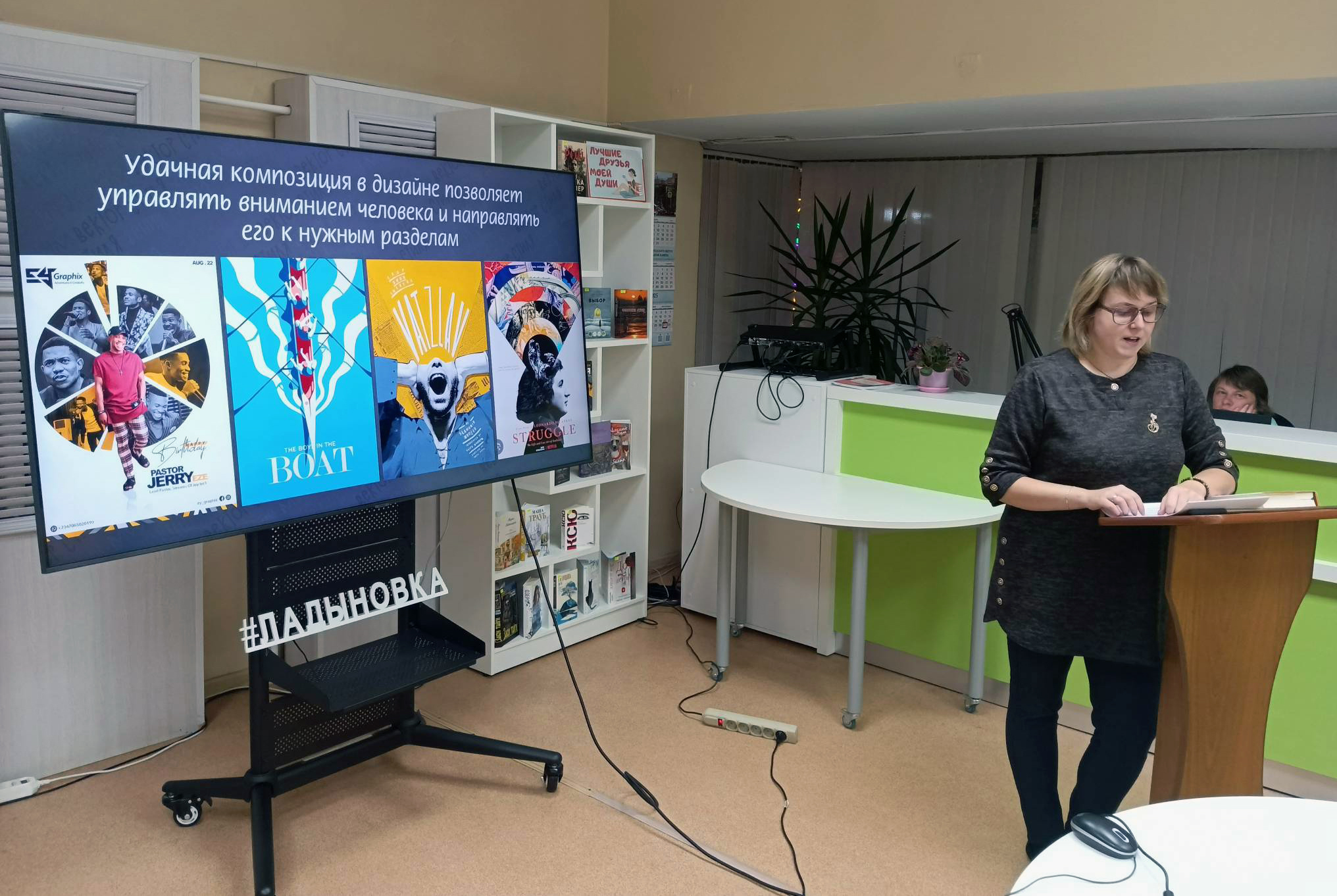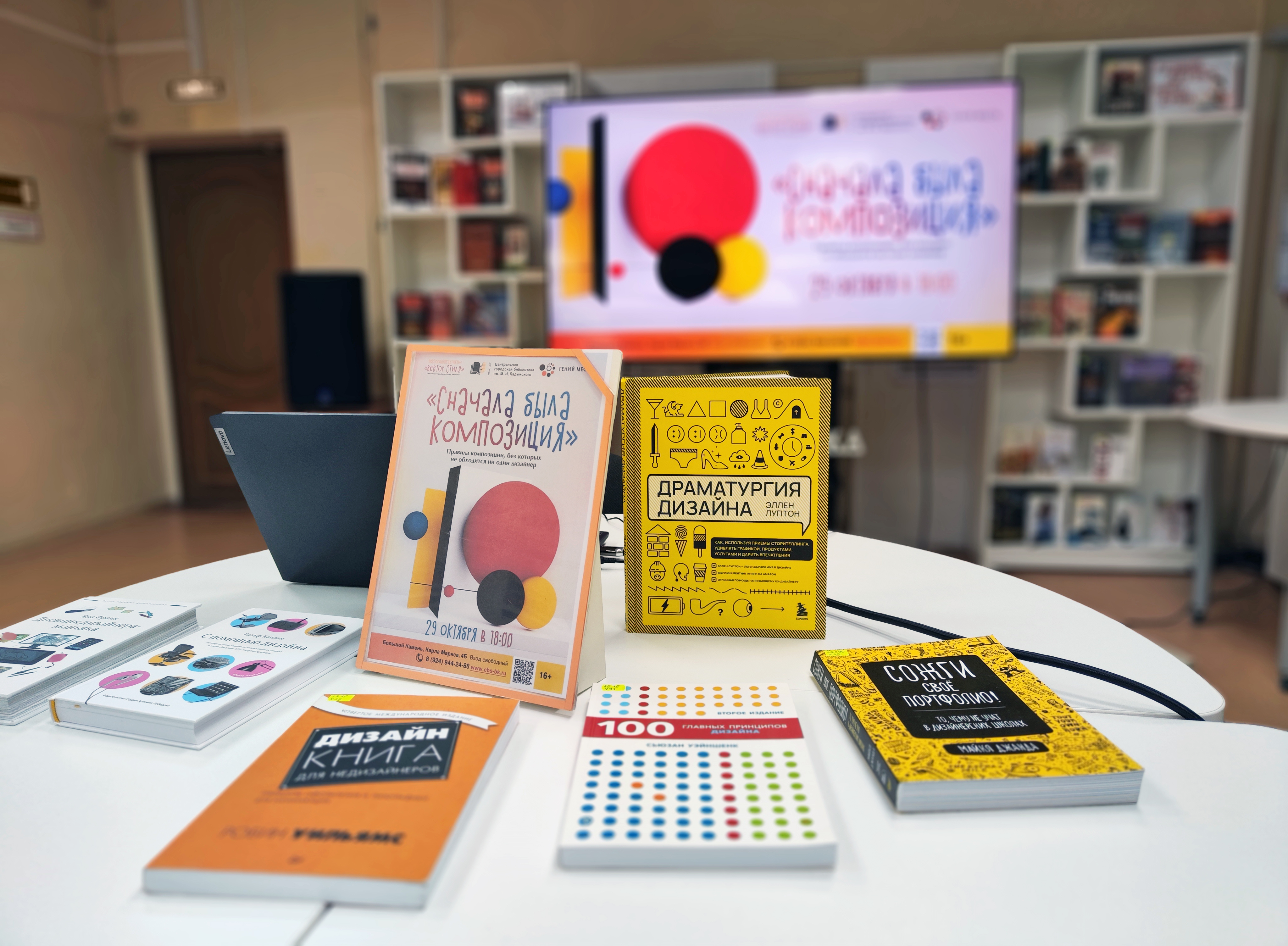 29 октября в 18:00 в Центральной городской библиотеке им. М. И. Ладынского прошла седьмая по счету лекция по графическому дизайну «Вектор стиля» (в рамках федерального проекта «Придумано в России» по созданию точек концентрации талантов «Гений места»).
