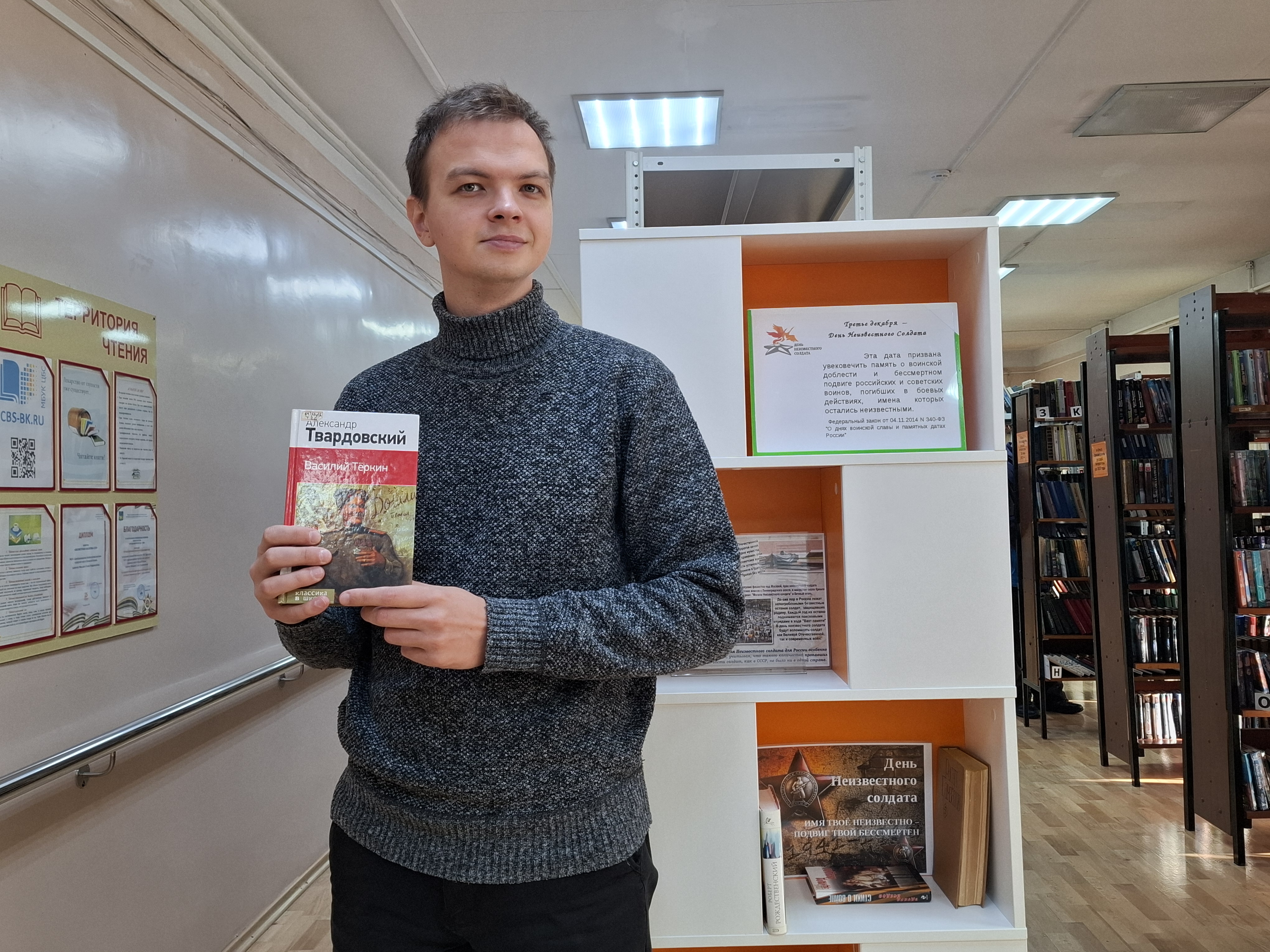 Каждый год, 3 декабря в России отмечается День неизвестного солдата — особая дата, когда мы отдаем дань памяти тем, кто своим мужеством и самоотверженностью защищал человечество, оставаясь в тени. В рамках этого важного события на абонементе Центральной городской библиотеки им. М.И. Ладынского была оформлена книжная выставка, посвященная темам героизма, самопожертвования и молчаливого труда людей, не ставших героями в классическом понимании, а также были проведены книжные обзоры «Нет безымянных героев», а самые активные читатели поучаствовали в викторине «Живая память» и освежили в памяти важные даты, связанные с этим днем. Приглашаем всех желающих посетить нашу библиотеку, чтобы окунуться в мир книг и размышлений о ценностях и доблести людей, чей вклад в историю часто остается незамеченным.