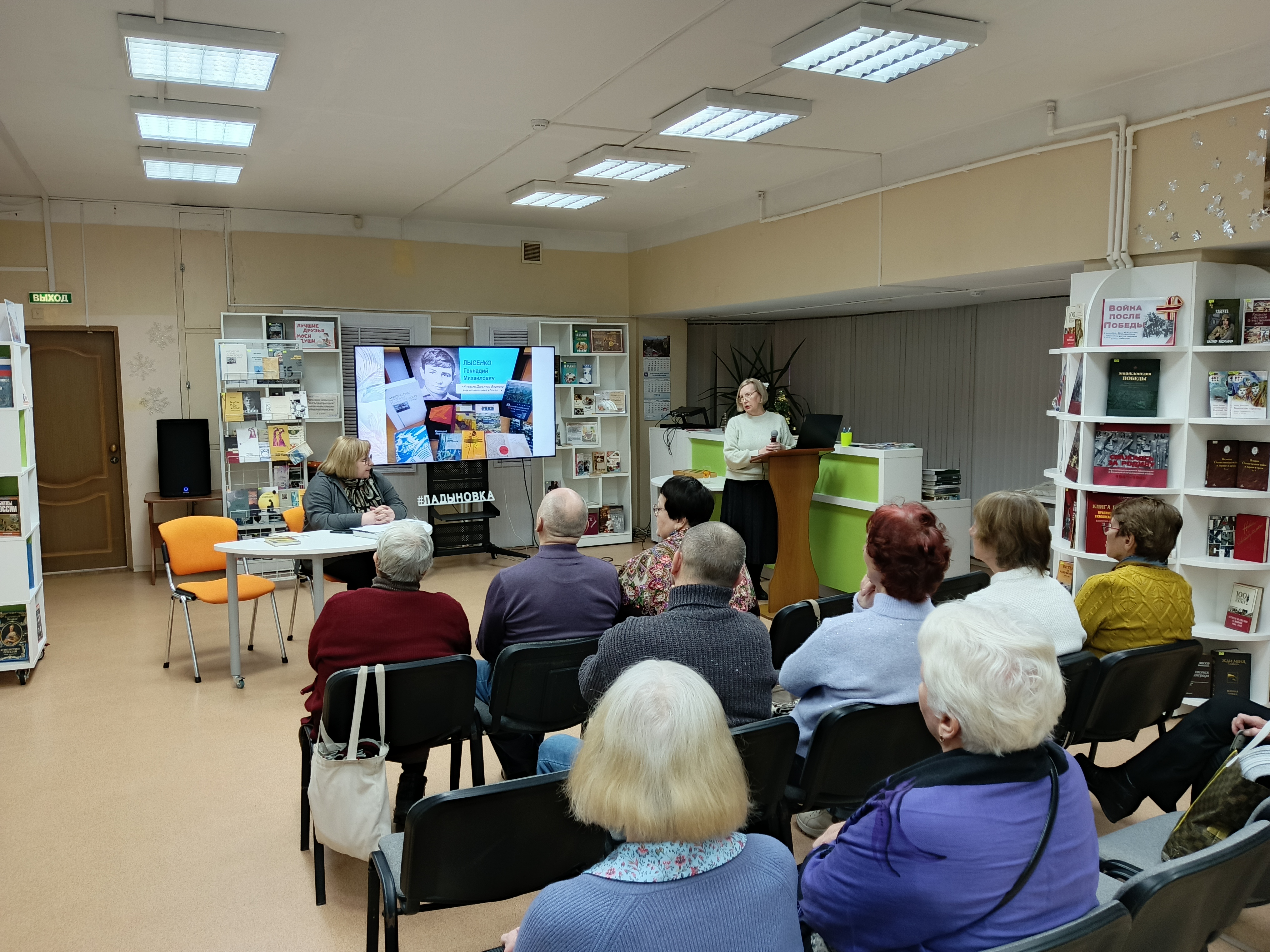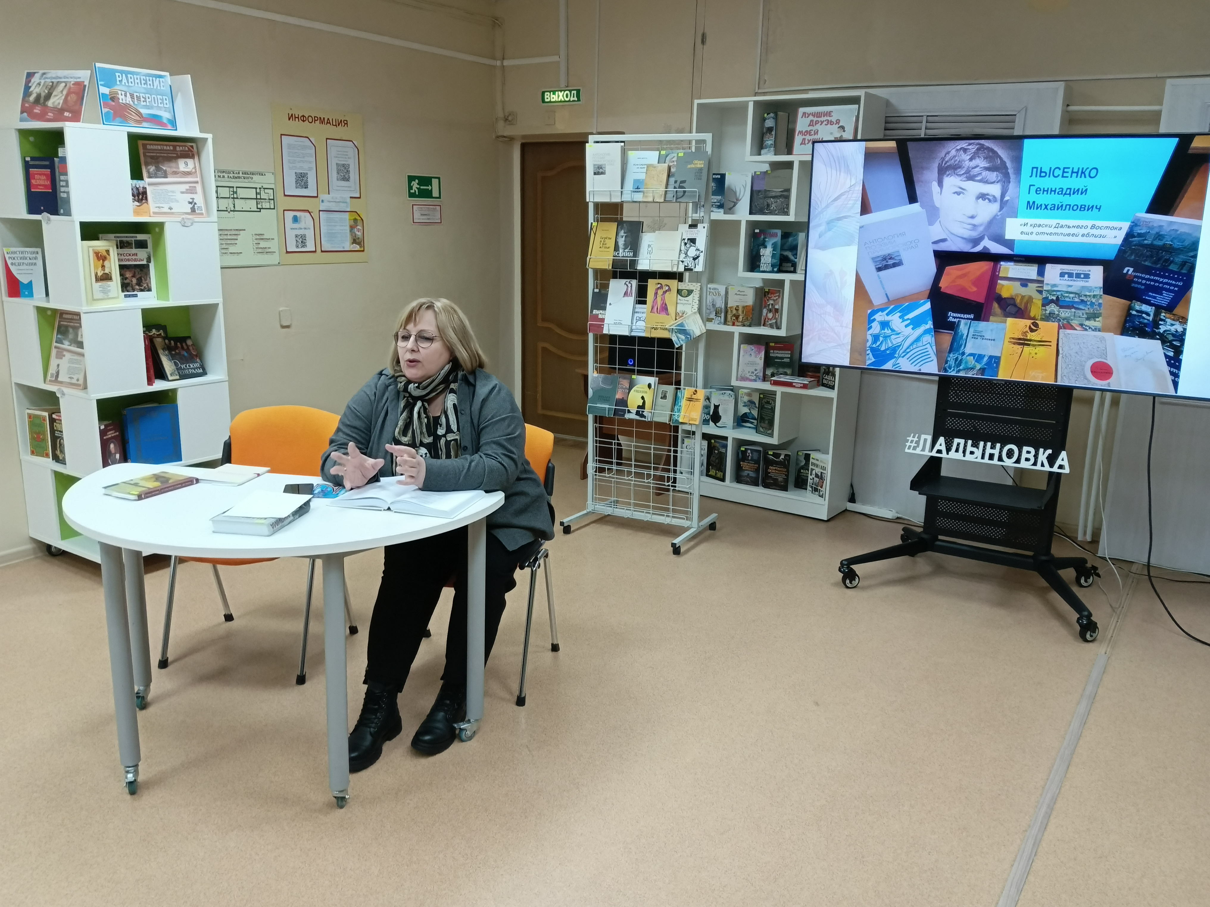 Ведущая мероприятия, сотрудница библиотеки, поделилась историей создания антологии. Она упомянула редакторов сборника — поэтессу Раису Мороз и литературного критика Александра Лобычева. Эти преданные поклонники приморской поэзии собрали лучшие произведения местных авторов, охватывающие период с 60-х годов XX века до наших дней.