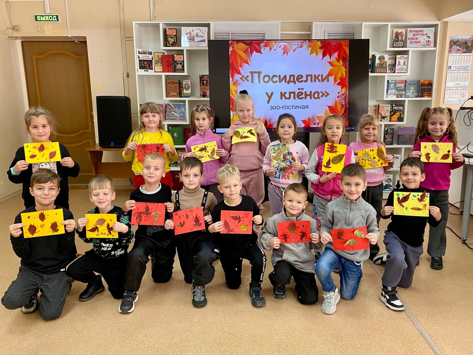 Яркие осенние краски сегодня наполнили стены нашей библиотеки! Для юных гостей из детского сада была организована зоо-гостиная «Посиделки у клёна».