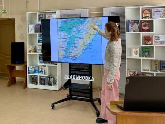 Затем наш путь пролегал к знаменитой горе Ливадийской (Пидан). Во время «восхождения» дети узнали о смене высотных поясов растительности и с неподдельным интересом изучали изображения кедрового стланика и рододендронов, украшающих склоны. Неизгладимое впечатление произвела виртуальная встреча с «хозяином тайги» – амурским тигром, занесённым в Красную книгу Российской Федерации.