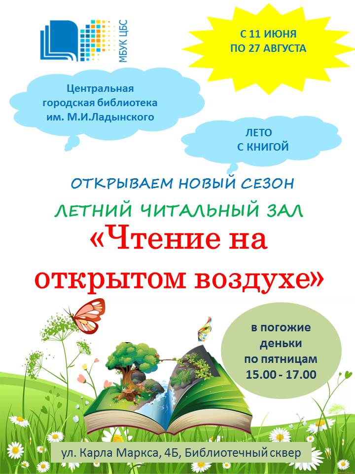 Лето — время отпусков и каникул. Дети, подростки, молодежь и взрослые больше времени проводят на воздухе, на природе. Поэтому, чтобы максимально приблизить библиотеку к читателю и создать благоприятные условия для чтения и содержательного отдыха горожан, с 11 июня по 27 августа будет открыт новый читательский сезон вне стен библиотеки – Летний зал «Чтение на свежем воздухе». Место расположения - Библиотечный сквер. Жители и гости города будут иметь возможность отвлечься от городской суеты и круговорота проблем, выбрать книгу или журнал себе по вкусу, заняв удобное место для чтения, поиграть в настольные игры, разгадать литературные ребусы, одним словом, провести время с пользой на свежем воздухе. Большой Камень город у моря, которому есть что показать, о котором есть что почитать…