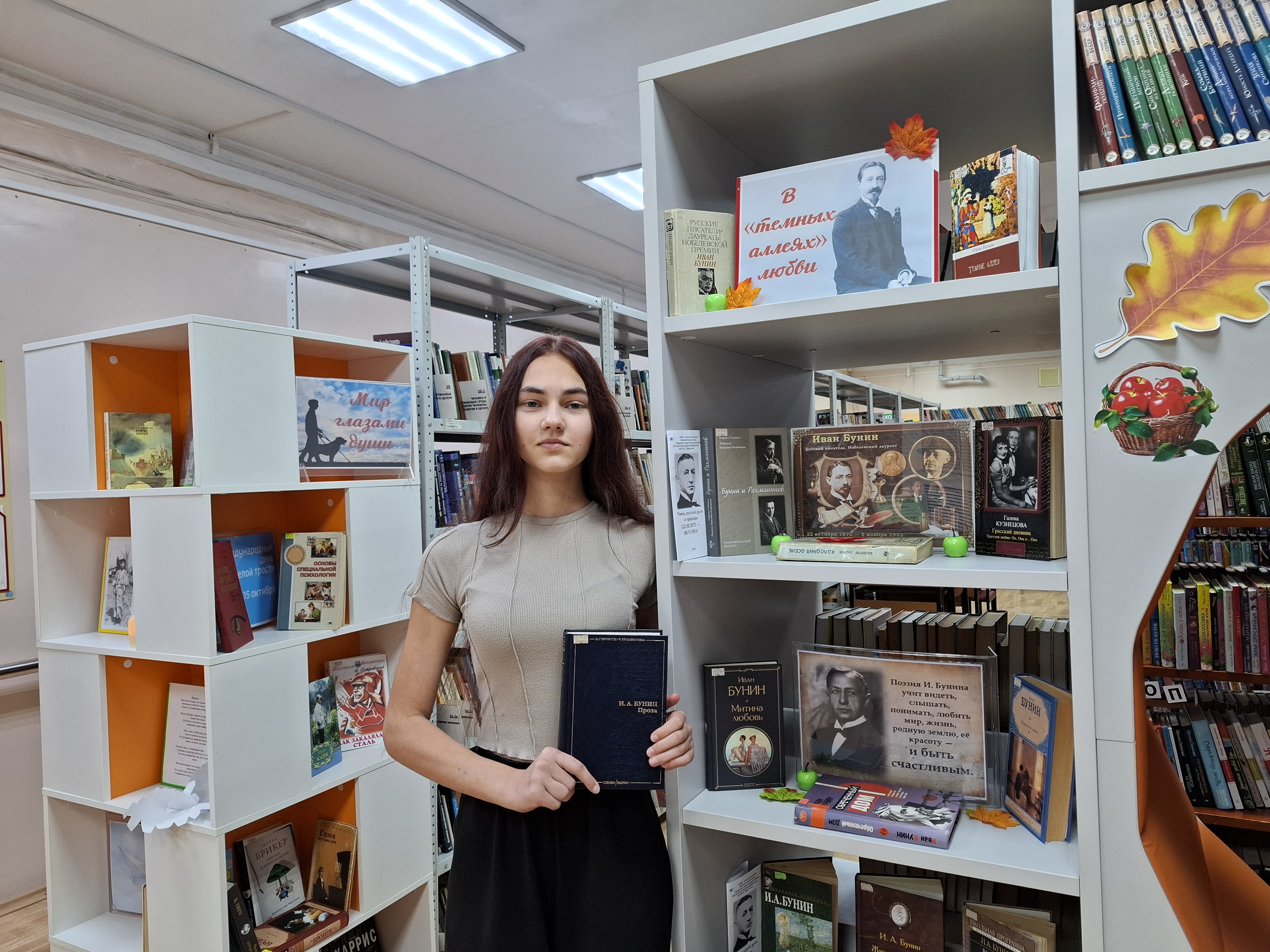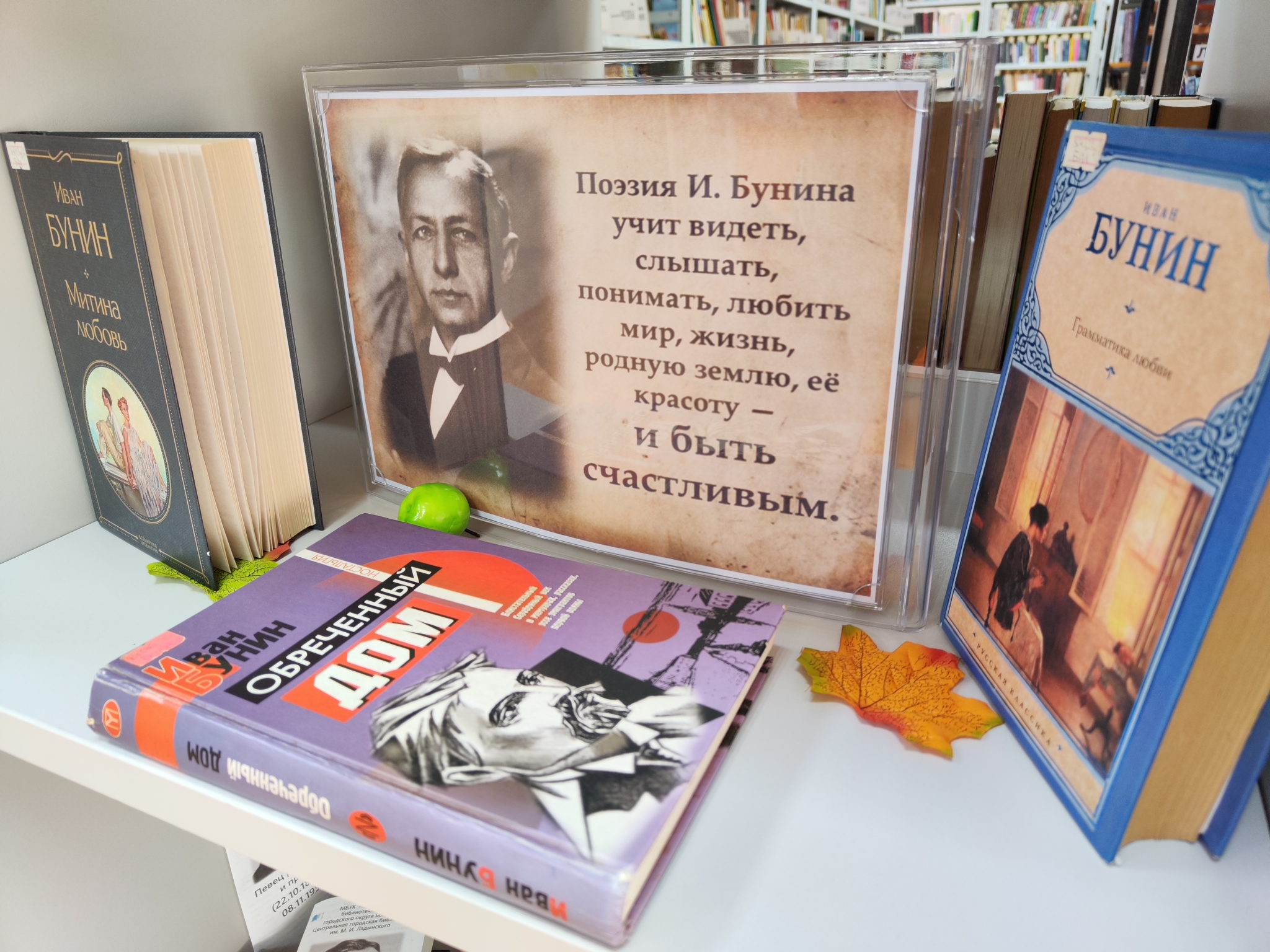 22 октября 2025 года в Центральной городской библиотеке им. М. И. Ладынского прошел обзор у выставки «В темных аллеях любви», приуроченной к юбилею великого русского писателя. Выставка была организована с целью представить незаслуженно забытые страницы творчества Бунина, акцентируя внимание на его стихах и прозаических произведениях, посвященных любви. Кроме того, в этот день прошла викторина, где посетители проверили свои знания о биографии и творчестве Ивана Бунина. Викторина собрала как опытных знающих о писателе, так и тех, кто только начал знакомиться с его творчеством. Данное мероприятие стало важной частью культурной жизни библиотеки и подарило всем участникам возможность не только насладиться литературой, но и пообщаться друг с другом. Оно подчеркнуло значимость наследия Ивана Бунина в русской литературе и продолжило традицию его чтения и изучения.