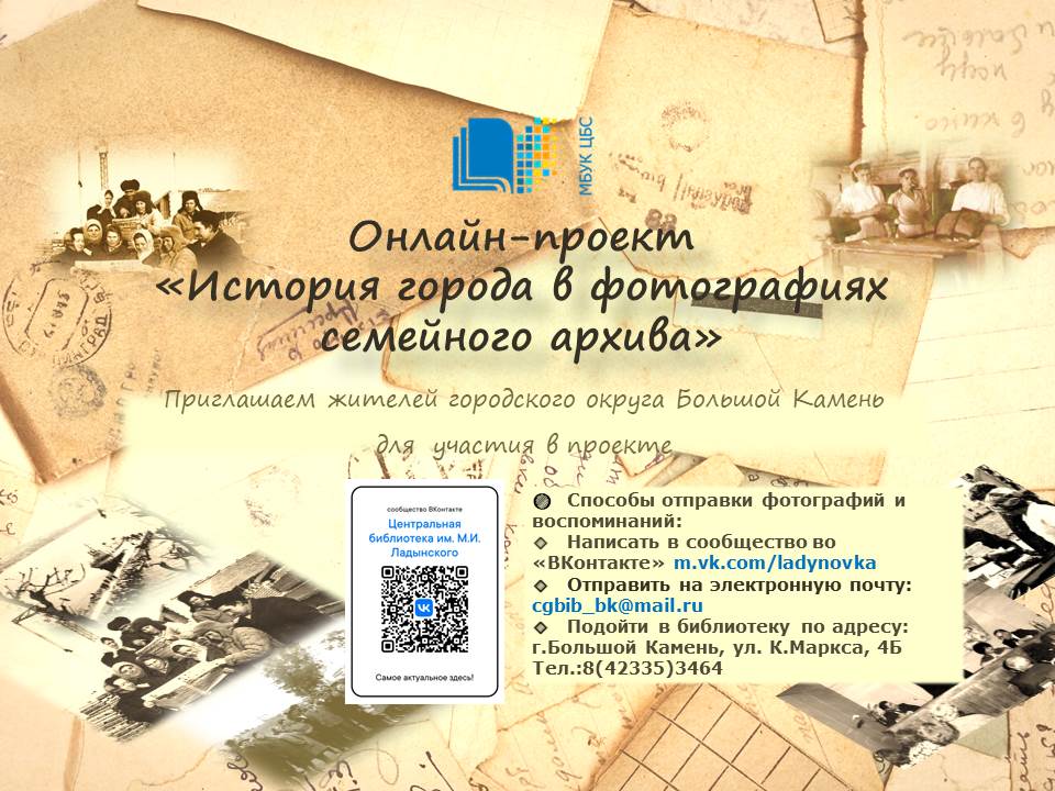 Мы запускаем масштабную инициативу по сбору и оцифровке фотографий из личных архивов горожан. Наш новый онлайн‑проект «История города в фотографиях семейного архива» начнёт работу 1 января 2026 года. Площадкой для  реализации станет  сообщество Центральной библиотеки им. М. И. Ладынского во «ВКонтакте».