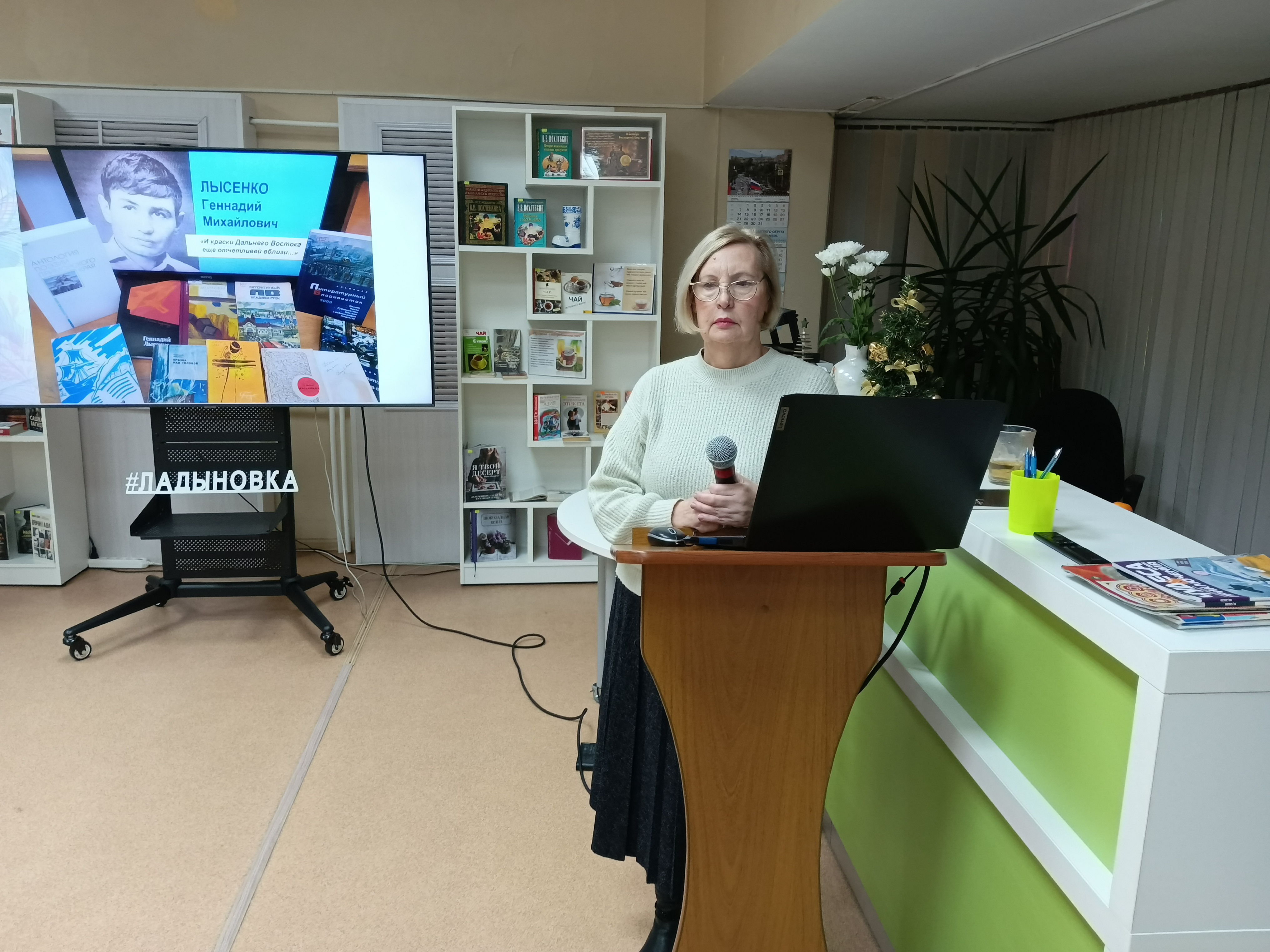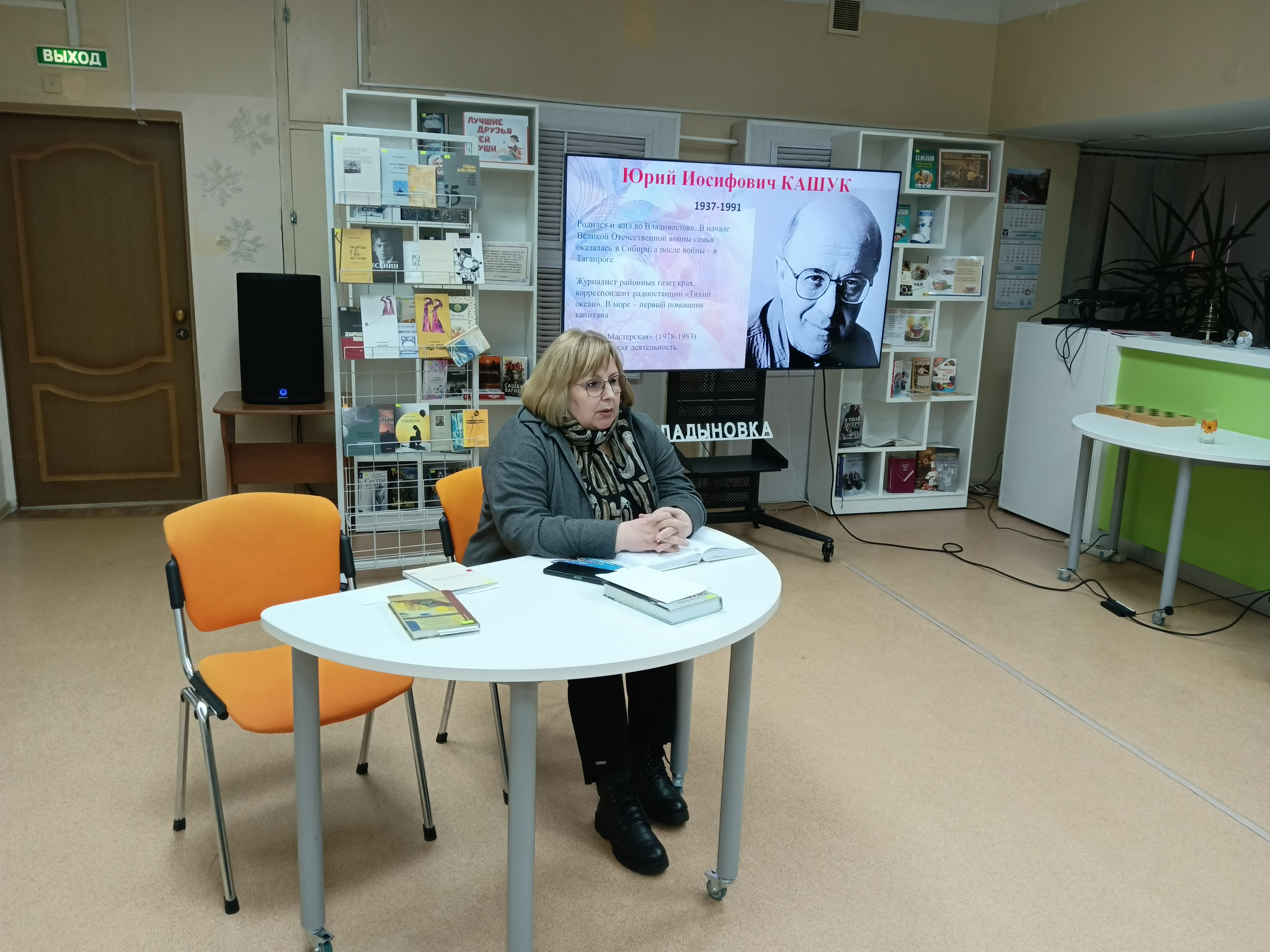 Ведущая мероприятия, сотрудница библиотеки, поделилась историей создания антологии. Она упомянула редакторов сборника — поэтессу Раису Мороз и литературного критика Александра Лобычева. Эти преданные поклонники приморской поэзии собрали лучшие произведения местных авторов, охватывающие период с 60-х годов XX века до наших дней.