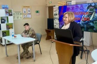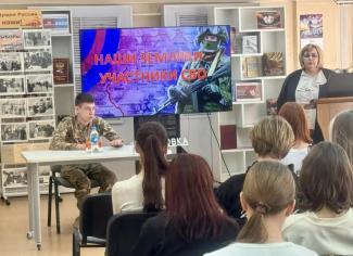 В Центральной городской библиотеке состоялся особенный Урок Мужества для десятиклассников СОШ № 2. Их почётным гостем стал Иван Меленчук, участник Специальной военной операции.