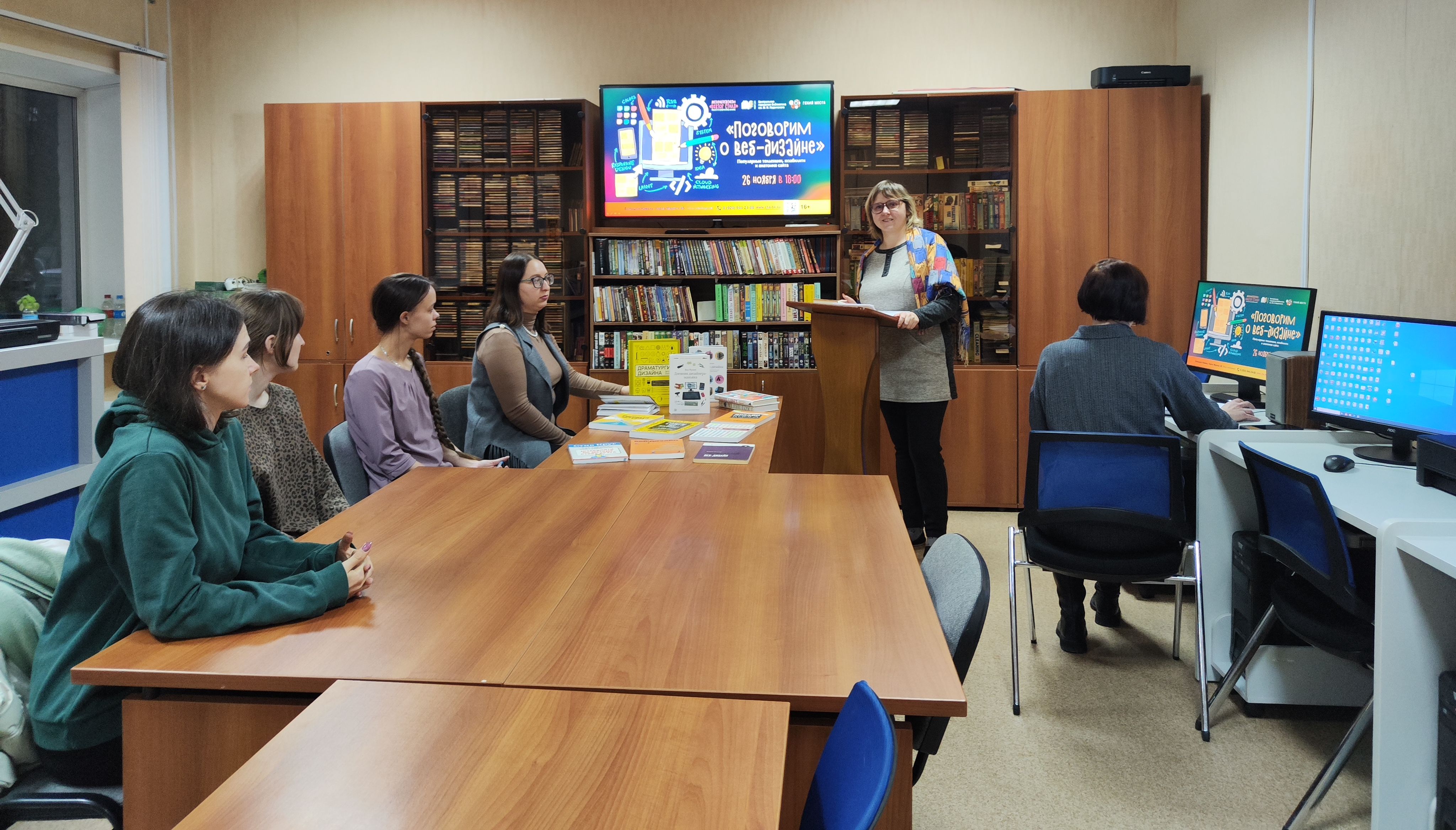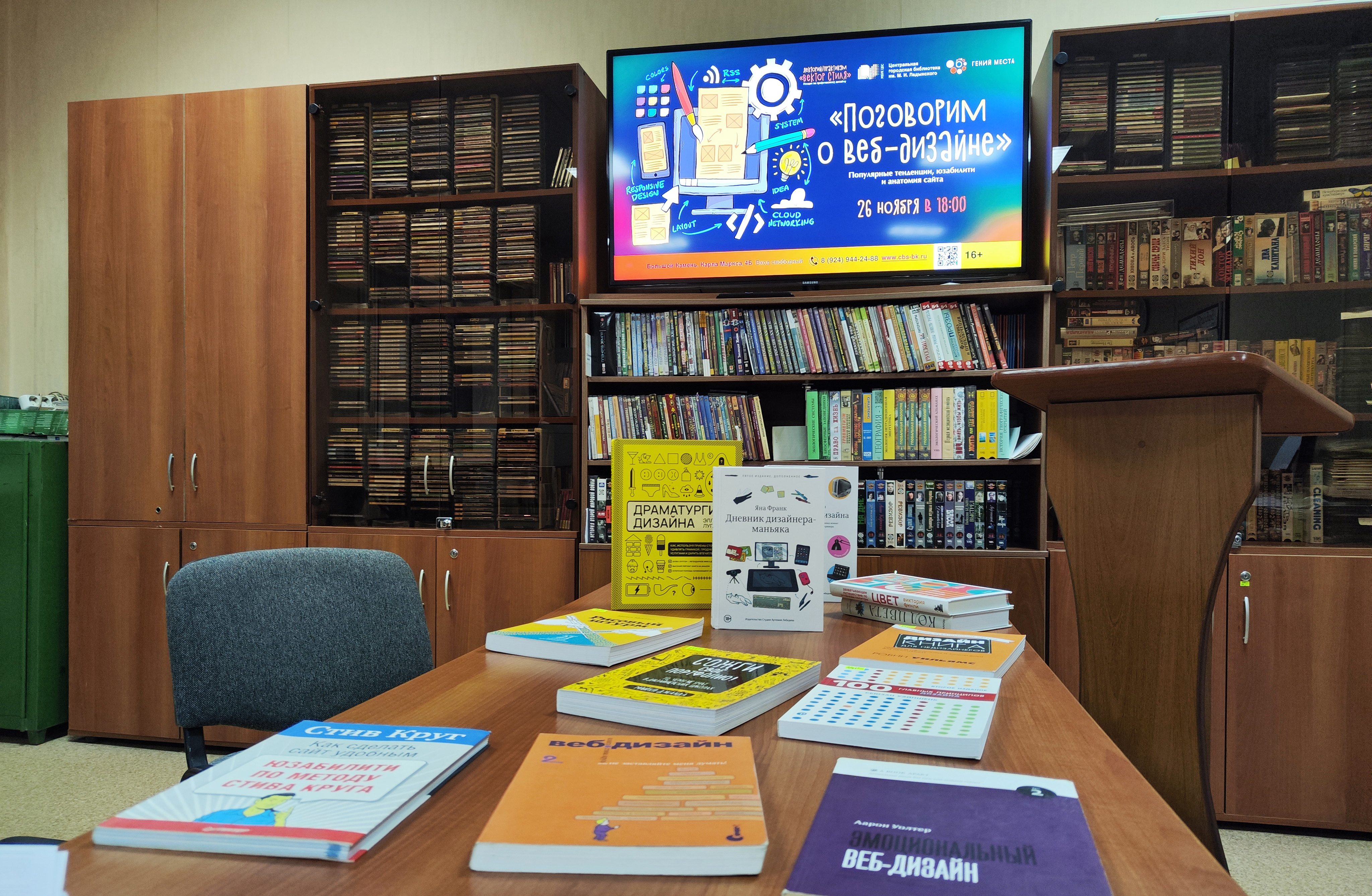 26 ноября в 18:00 в Центральной городской библиотеке им. М. И. Ладынского прошла восьмая лекция по графическому дизайну «Вектор стиля» (в рамках федерального проекта «Придумано в России» по созданию точек концентрации талантов «Гений места»).